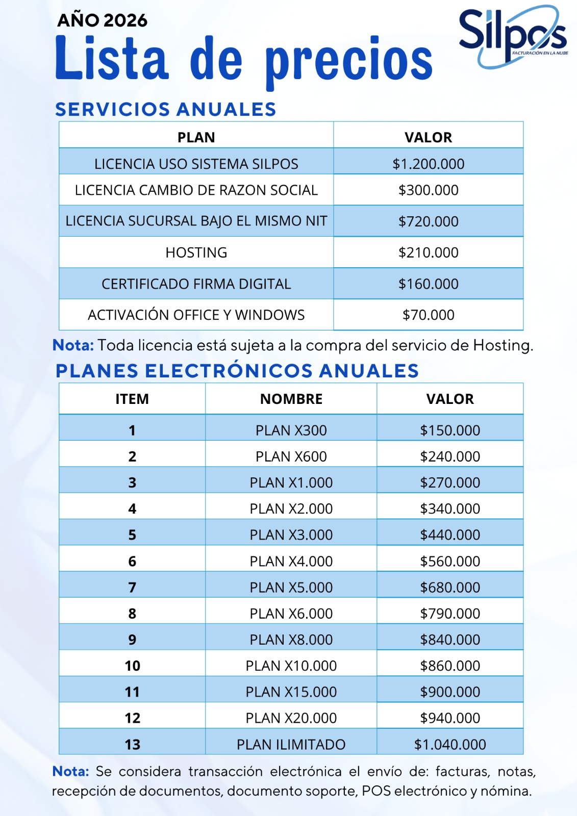 Silpos Factura Electrónica es una aplicación que le permitirá eliminar el trabajo manual de entrega y recepción de facturas, está Modalidad está autorizada ante la Dirección de Impuestos y Aduanas Nacionales (DIAN). Agiliza y automatiza los reportes ante este ente de control. El principal objetivo de esta unidad administrativa es mejorar la comunicación con la entidad y contribuir a la optimización de las empresas colombianas. Lo anterior lleva a un ahorro considerable de tiempo y de recursos humanos que antes debían ejecutar estos procesos operativos.